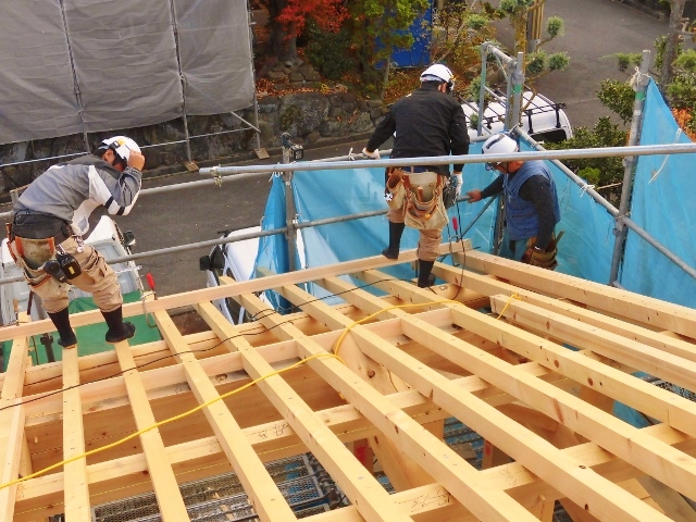 ヨドヤの取り付け 2014.11.18 先代の足あと 今日は朝から冷え込み屋根の上は一日肌寒い一日でした。 この寒い中大工さん ノキ ヨドヤ の取り付けが始まりました。 ヨドヤの取り付けも重くて長い為に少し時間が掛かりそうです。